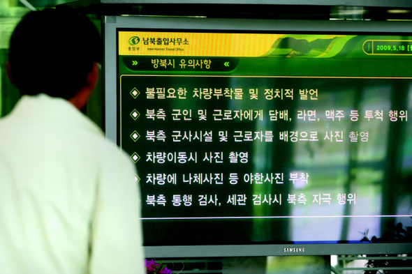개성공단 방문객이 파주 도라산 남북출입사무소에서 출경을 기다리며 방북 시 유의사항을 살펴보고 있다. 현대아산 직원 유아무개씨 억류 문제 등을 풀려면 남북 간 대화 채널을 빨리 복원해야 한다는 지적이 제기되고 있다. 사진 한겨레 이정아 기자