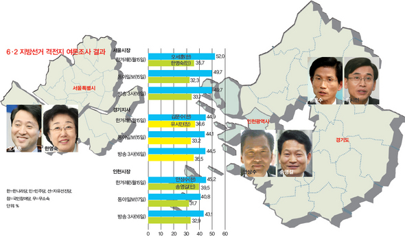 6·2 지방선거 격전지 여론조사 결과>>수도권(서울·경기·인천) (※클릭하시면 더 크게 보실 수 있습니다.)