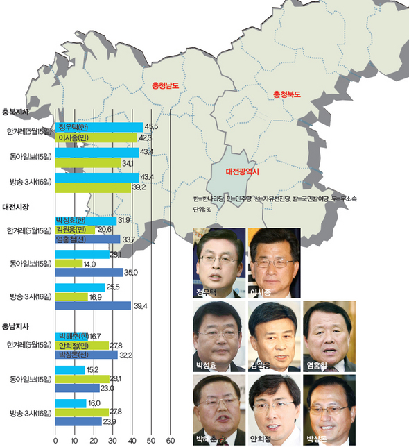 6·2 지방선거 격전지 여론조사 결과>>충청권(대전·충남·충북) (※클릭하시면 더 크게 보실 수 있습니다.)