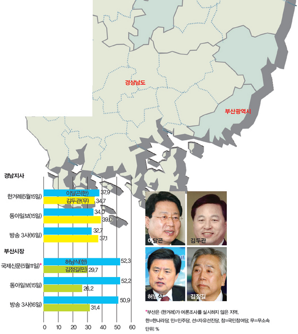 6·2 지방선거 격전지 여론조사 결과>>부산·경남  (※클릭하시면 더 크게 보실 수 있습니다.)
