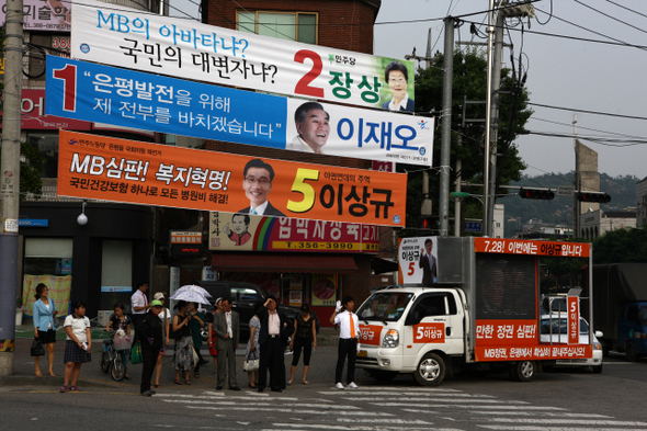 은평구 대조동에서 10년 넘게 살고 있는 나하균(48)씨는 6·2 지방선거에 이어 이번 국회의원 재선거에서도 여전히 ‘정권 심판’이 필요하다는 생각이다. “저도 과거 민주화운동을 경험한 세대인데 그때 그렇게 지키려 노력했던 인권과 언론 자유 등의 가치가 퇴색하는 상황이 안타까웠습니다. 한나라당이 그동안 너무 서민을 무시하고 인권을 탄압해왔잖아요. 그래서 저는 민주당입니다.”