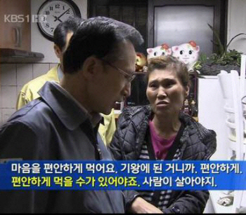 9월22일 KBS 뉴스 이명박대통령 수해지역 방문. 한국방송 화면 갈무리