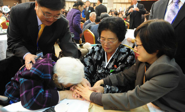 10월30일 이별 상봉. 이별과 상봉의 어색한 조합. 60년을 헤어져 살고 겨우 한나절 만났다. 상봉 가족들은 살아서 다시 만날 날을 기약했지만, 진심으로 살아서 그런 날이 오리라고 생각하는 사람은 많지 않았다. 우 전 의원도 마찬가지였다. 노모는 자식들을 끌어안으면서 남은 눈물을 쏟았다. 몸의 습기가 다 빠져나가버린 듯 마른 울음을 울었다. 우 전 의원은 참혹했고 잔인한 순간이었다고 전했다.