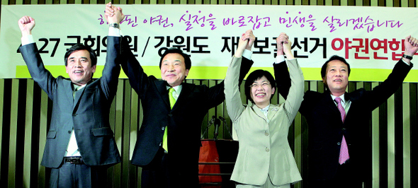 4·27 재·보궐 선거는 내년 총선과 대선에서 유리한 고지를 차지하려면 반드시 이겨야 하는 마지막 기회다. 민주당·민주노동당·진보신당·국민참여당은 경남 김해을과 경기 성남 분당을, 전남 순천의 국회의원 보궐선거, 강원지사 보궐선거에 야권 단일후보를 내세웠다. 한나라당은 순천에 후보를 내지 못했지만, 다른 지역에선 ‘져서는 안 된다’는 각오로 선거운동에 돌입했다.