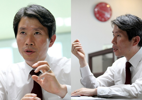 = 김해을 재보선 과정에서 유시민 대표가 그랬다. ‘김해을 민주당 후보 중에는 친노가 없다.’ 이건 금도를 넘어선 말이었다. 친노가 뭔가? 노무현이 표상하는 가치를 계승하려는 세력 아닌가. 그 가치의 핵심은 반칙과 특권을 거부하고 정의를 위해 몸을 던지는 것이다. 이것을 특정 정치집단이 독점하려 해선 안 된다. 그건 노무현 정신도 아니고, 노무현을 욕보이는 길이다. 당내에서 누군가 친노라는 이름을 배타적으로 전유하려 한다면 단호히 싸울 것이다. 노무현의 가치를 계승하려는 사람이라면 안희정이 됐든 이광재가 됐든 민주당의 이름으로 나가 싸워야 한다. 친노의 적자로 나서려는 욕망을 뿌리쳐야 한다. - 많은 사람들이 ‘진정성’과 ‘의리’를 이인영의 강점으로 꼽는다. 김근태 고문과의 오랜 인연도 이런 이미지가 만들어지는 데 큰 몫을 했다. 그러나 ‘성공’이라는 세속의 기준에서 볼 때, 정치인 김근태는 재야 지도자 김근태에 미치지 못한 것 같다.