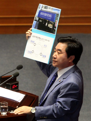 이석현 민주당 의원이 지난 6월2일 국회 대정부 질의에서 "우리금융지주의 삼화저축은행 인수 과정에 이상득 의원 등 정권 실세들이 개입했다"고 주장하고 있다. 한겨레 탁기형