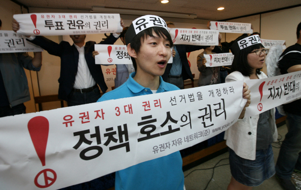 그래서 유자넷 준비모임이 지난 6월1일 떴다. 유자넷은 유권자의 참정권과 표현의 자유 보장을 위해 선거법 개정 운동을 벌이는 시민단체·누리꾼 등의 모임이다. 이들은 인터넷 실명제(82조), 시설물 설치 금지(90조), 선거 6개월 전부터 정치적 논의의 광범위한 제한(93조), 각종 집회 제한(103조), 서명날인 운동 금지(107조), 매수 및 이해유도죄(230조), 사전선거 운동 금지(254조) 등을 독소 조항이라고 지목한다. 이 조항들 때문에 유권자가 선거에 참여하기 어렵고, 정책 선거가 불가능하다는 것이다. △후보자·정당 지지·반대의 권리 △정책 호소의 권리 △투표 권유의 권리가 보장되도록 선거법을 고치라는 게 이들의 요구다. 올 10월 초 ‘유권자 총회’ 열어 정치권이 좋아하는 ‘국제 기준’에 비춰보더라도 선거법은 비상식적인 것으로 평가된다. 유엔 인권이사회는 지난 6월3일 스위스 제네바에서 열린 17차 회의에서 ‘한국의 의사와 표현의 자유의 권리에 관한 보고서’를 공식 채택했다. 보고서는 특히 선거법과 관련해 △선거 6개월 전부터 정치적 논의를 광범위하게 제한하며 △선거운동과 단순한 의견 개진을 모호하게 구분해 자의적으로 적용하며 △선거 쟁점과 관련한 정책 캠페인을 규제하는 것이 문제라고 지적했다. 그러곤 “선거 당일에 이르는 중요한 시기에 선거 및 후보자 관련 주요 사안에 관한 정보와 의견의 공개적이고 자유로운 교류를 포함해 표현의 자유에 관한 권리를 전면 보장할 것”을 권고했다. 이를 근거로 유자넷은 선거법의 문제점을 분석한 보고서를 지난 6월8일 국회 정치개혁특별위원회 위원들에게 전달했다. 이들은 선거법 개정 관련 입법청원안을 만들어 제출하고, 개정에 반대하는 국회의원·정당의 정보를 공개해 내년 총선·대선에서 ‘선택의 기준’도 마련할 계획이다. 10월 초엔 ‘유권자 총회’도 연다. 10월은 내년 총선의 6개월 전으로, 선거법 93조에 따라 정치적 의사 표현에 제한을 받기 시작하는 상징적인 시점이다. 정당의 공천제도 개선 방안도 시민사회에서 제시된다. ‘백만송이 국민의 명령’(국민의 명령)은 6월16일 국회에서 이와 관련한 토론회를 열었다. 물론 국민의 명령이 정파등록제에 기반을 둔 야권 단일 정당 건설을 주장하는 만큼 공천제도 개선안 역시 ‘통합의 기술’로 제시된 측면이 있다. 하지만 정치 발전과 민주화의 토대가 민주적 공천임을 고려하면 이들의 목소리는 흘려들을 일은 아니다. 더구나 당원들의 의사를 반영하는 상향식 공천제는 정당에서도 간간이 논의되지만, 국회의원들의 기득권 때문에 번번이 무산되어온 터다. 6월16일 토론회에서는 대규모 국민참여경선이 주로 논의됐다. 김두수 국민의 명령 집행위원은 전문성·개방성·대중성에 입각한 공천제도를 주장했다. 전문가와 국민 신청자 절반씩으로 구성된 배심단을 만들어 후보자를 공개 심사하고, 당원을 포함한 국민참여경선을 실시하자는 것이다. 배심단 평가와 국민참여경선 결과는 일정한 비율로 합산해 최종 공천자를 가린다. 조성대 한신대 교수(국제관계학부)는 1인2표제로 국민참여경선을 실시해 진보 정당을 배려해야 한다고 주장했다. 문성근 국민의 명령 대표는 지난 5월31일 지역구 후보의 70%는 경선으로 뽑고, 30%는 정파별 득표 비율에 따라 전략공천을 하는 방안을 제안하기도 했다. 한국 시민사회단체 430여 곳의 연대조직인 시민사회단체연대회의도 정치제도 개선안을 마련 중이다. 선거법은 물론 비례대표 확대, 석패율제 관련 의견, 지방자치 강화 방안 등 전반적인 정치관계법 개정을 고민하고 있다. 단체들의 의견을 모아 7월까지 단일안을 만들고, 국회와 논의체를 구성해 각 정당이 좀더 적극적으로 정치제도를 개선하는 데 나서도록 유도할 계획이다. 권리를 행사할 힘의 원천 이탈리아의 정치사상가 노르베르토 보비오는 저서 <자유주의와 민주주의>에서 민주화의 진전 기준을 이렇게 설명했다. “관련 있는 정책 결정 과정에 참여할 권한이 있는 참여권자의 수가 얼마나 증대되었느냐 하는 것보다는, 이러한 권리를 행사할 수 있는 상황이나 영역의 폭이 얼마나 증대되었는지를 알아보아야 한다.” ‘권리를 행사할 상황이나 영역의 폭’을 늘리는 건 정치인이 아니다. 그들의 운명을 좌우할 힘을 가진 유권자의 참여다. 조혜정 기자 zesty@hani.co.kr