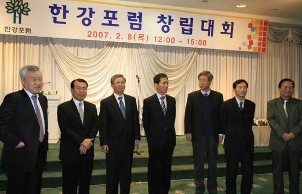 2007년 2월8일 서울 강남에서 열린 박 전 대표 외곽 지지조직 ‘한강포럼’ 출범식에서 유신 피해자인 ‘71동지회’ 인사들이 박 전 대표 지지 뜻을 밝히며 인사하고 있다. 이날 지지 선언은 박 전 대표의 측근 홍아무개씨가 이끌어낸 것으로 알려졌다. 연합 성연제
