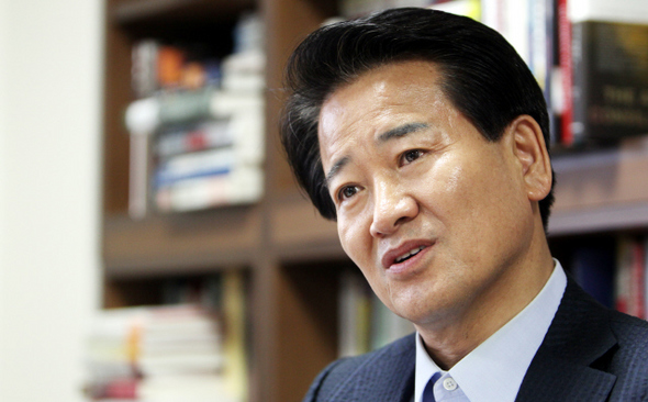 =북한의 핵과 인권 문제에 단호히 대응하겠다고 했다. 이건 한나라당의 아류다. 미국 부시 정권 때 만든 북한인권법은 북한 붕괴론에 입각한 것이다. 북한 인권 문제에 단호하게 대응하겠다는 표현 속에는 지금의 북한 체제와 공존하기 어렵다, 인정하기 어렵다는 인식이 숨어 있다. 1991년 노태우 정부 때의 남북 기본합의서 1장 1조가 “남과 북은 서로 상대방의 체제를 인정하고 존중한다”이다. 그것에 기반을 둔 6·15 남북 공동선언, 9·19 공동성명 10·4 정상선언 등이 민주당의 정체성이고, 성과이고 금자탑이다. 그런데 이걸 놔두고 단호한 대응, 원칙 있는 포용정책, 더 나아가 종북진보를 운운했다. 받아들일 수 없다. 손 대표가 이해가 부족했거나, 아니면 정말 그런 생각을 갖고 있다면 심각한 문제다. 그래서 토론을 제안한 거다. -정 의원의 북한 인권 개선에 대한 해법은 뭔가.