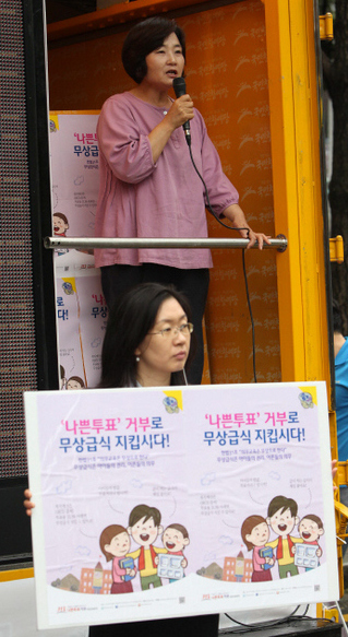 무상급식 주민투표 불참을 호소하는 배옥병 ‘나쁜투표거부 시민운동본부’ 상임대표. 한겨레 김태형