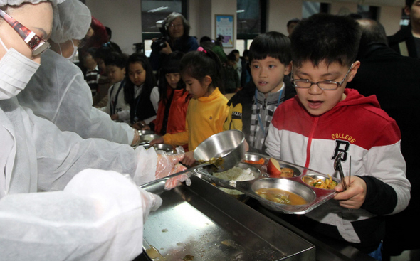 무상급식이 시행되고 있는 서울 금옥초등학교. 8월24일 주민투표 결과에 따라 ‘소득 상위 50%’에 속하는 부모를 둔 학생들은 다시 급식비를 내는 상황이 올 수도 있다. 한겨레 박종식