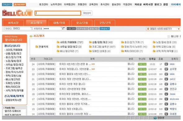 인터넷 거래 중계 사이트에는 트위터 계정 등을 판매한다는 글을 쉽게 찾아볼 수 있다. 4·11 총선은 ‘선거철 SNS 떴다방’ 업자들에게는 대목이나 마찬가지다.