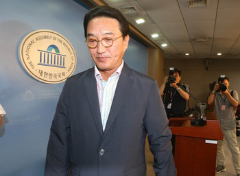 중앙선거관리위원회로부터 4·11 총선 당시 비례대표 후보 공천과 관련해 거액의 공천헌금을 받은 혐의로 고발당한 당시 새누리당 공천심사위원 현기환 여의도연구소 부소장이 8월2일 오후 국회 정론관에서 기자회견을 열어 금품 수수 사실을 부인한 뒤 회견장을 나서고 있다. 현 의원은 "검찰이 빨리 소환해 조사해 달라"고 말했다. 이정우 선임기자 woo@hani.co.kr
