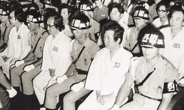 예춘호 전 총장은 전두환 정권 당시 김대중 내란음모사건으로 기소돼 징역 12년형을 받았다. 뒷줄 오른쪽에서 세번째 앉은 예춘호 전 총장의 모습이 보인다.