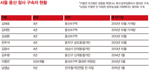 남일당 망루에 오른 이들은 “강제 철거 전에 상인들에게 임시 주거와 생계를 위한 임시 시장을 마련해달라”고 주장했다. 평범한 상인이던 이들은 주검이 되거나 ‘테러리스트’가 돼 망루에서 내려올 수 있었다. 그사이 정부는 재개발에 관한 몇 가지 후속 조처를 내놓았다. 조합원에게 분양하고 남은 상가는 상가 임차인들에게 우선 분양권을 주고 영업 손실에 따른 휴업 보상비를 석 달치에서 넉 달치로 늘리겠다고 했다. ‘도시 및 주거환경정비법’ 개정에도 나섰다. 하지만 폭력 용역업체는 여전히 곳곳에서 문제를 일으키고 있고, ‘제2의 용산’으로 불리는 철거촌은 도처에 널렸다.  이들은 “시간이 오래 걸리겠지만, 반드시 이 사건의 재심을 받고 싶다”고 힘주어 말했다. 남일당 건물은 이미 없어졌지만, 망루는 여전히 불길에 타고 있다.
