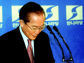 2003년 12월 서울 여의도 한나라당 기자실에서 이회창 전 대표가 불법 대선자금 모금과 관련한 대국민 사과 성명을 발표하고 있다. 역대 대선자금은 자주 검찰 수사의 대상이 되었다. 윤운식 기자