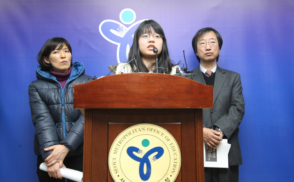 지난 1월26일 서울시교육청에서 ‘서울 학생인권 조례안’ 공포 기자회견이 열리고 있다. 한겨레 신소영 기자