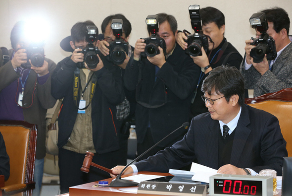 지난해 11월20일 국회 법제사법위원회에서 이춘석 민주통합당 간사(맨 오른쪽)가 택시를 대중교통 수단으로 인정하는 대중교통법 개정안을 상정하고 있다. 강창광 기자
