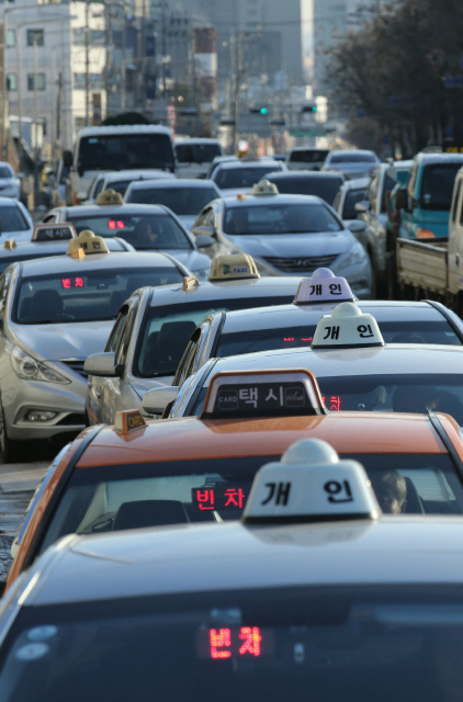 서울역 부근에 택시가 늘어선 모습. 현재 서울에서 운행하는 택시 수는 7만2천 대로 인구 대비 세계 최고 수준이다 김봉규기자