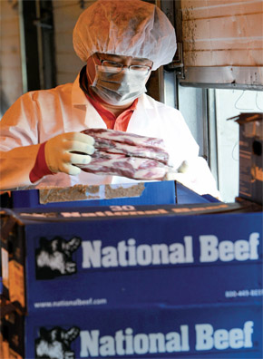 지난해 4월 미국에서 광우병에 걸린 고령우가 발견됐을 때 한국 정부는 수입을 중단하지 않고 검역만 강화했다. 당시 농림수산검역검사본부 검역관이 경기도 광주의 한 보세창고에서 미국 냉동 쇠고기를 개봉해 검사하는 모습. 한겨레 김봉규 기자