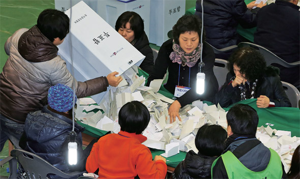 ‘부동층’은 마음을 정하지 못한 유권자를 말한다. 이들이 애초 선호했던 후보와 실제 투표한 후보는 같을까 다를까. 18대 대선 개표소의 모습. 한겨레 이정아 기자
