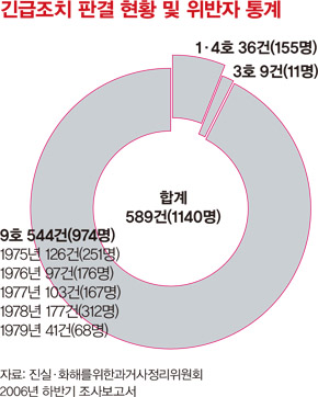 ‘억울한 죽엄을 당한 자’와 ‘최연소 긴조 위반자’는 피해자의 일부일 뿐이다. 3월21일 헌법재판소의 위헌 결정으로 국가배상 가능성이 커졌지만 정확한 피해자 수는 확인조차 되지 않는다. 2006년 진실·화해를위한과 거사정리위원회가 파악한 위반자 수는 1140명(사건 수 589건)이다. 위원회가 국가기록원 등에서 확보한 판결문에 등장하는 이름만 집계한 수다. 권혜령 전 진실화해위원회 조사관(현 성균관대 법학연구소 연구원)은 “위원회가 확보하지 못한 판결문까지 고려하면 위반자는 100~200명 더 늘어날 수 있다”고 설명했다. 이 숫자 역시 피해를 입었지만 유죄 확정을 받지 못한 사람은 포함하지 않는다. 1979년 12월8일 긴조 9호가 해제되면서 재판 도중 풀려난 면소자나 기소유예·공소취소자도 제외돼 있다. 이들은 사건 기록을 입수해 스스로 피해 사실을 입증해야 하는 어려움을 안고 있다. 민변은 이들을 다 합칠 경우 2천여 명까지 피해자가 늘어날 것으로 보고 있다.