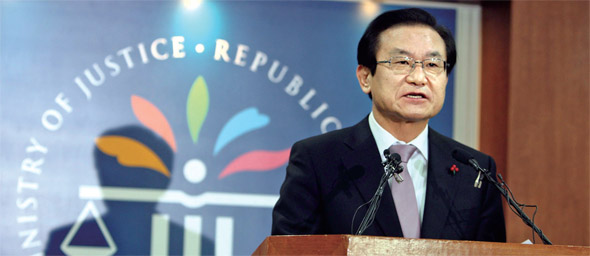 2009년 12월29일 이귀남 당시 법무부 장관이 경기도 과천시 정부청사에서 이건희 삼성전자 회장을 단독으로 특별사면한다고 발표하고 있다. 이건희 회장은 김용철 변호사의 양심선언으로 배임·조세포탈 혐의가 드러나 2009년 8월 징역 3년에 집행유예 5년을 선고받았다. 한겨레 김태형 기자