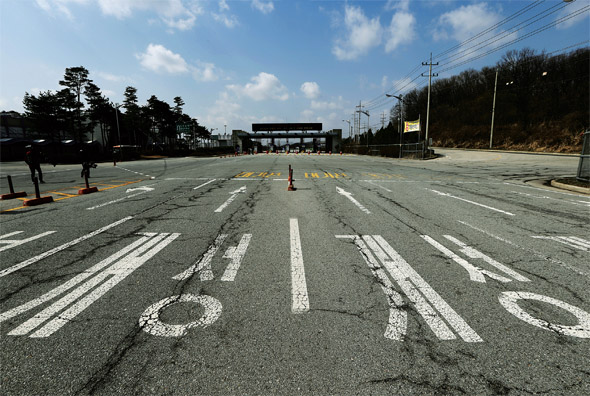 ‘개성길은 정녕 막히고야 마는가?’ 북쪽의 잇따른 대화 거부와 남쪽의 잔류 인원 철수 결정이 이어지면서, 착공 10돌을 맞은 개성공단이 사상 최악의 위기 상황으로 치닫고 있다. 한겨레 김명진 기자