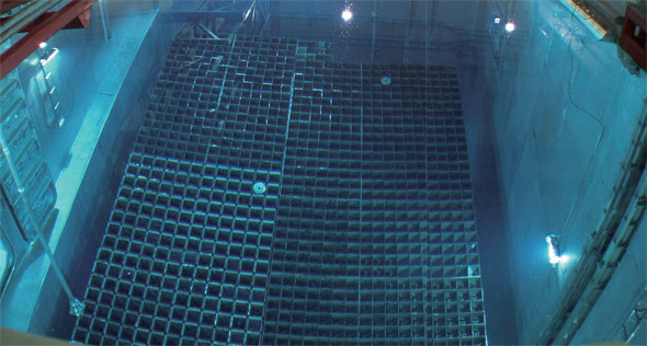 최근 핵연료봉에도 휘발유·액화천연가스처럼 에너지 관련 세금을 매겨야 한다는 주장이 힘을 얻고 있다. 국내의 한 핵발전소 임시 저장 수조에 보관돼 있는 사용후핵연료봉. 한국수력원자력 제공