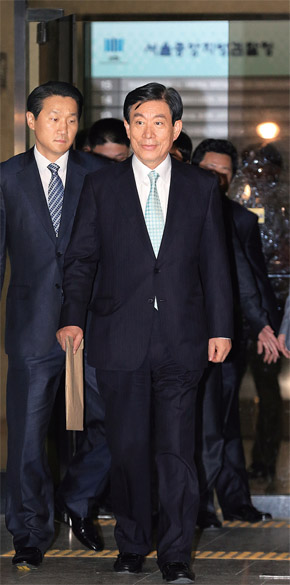 원세훈 전 국가정보원장이 피고발인 신분으로 소환 조사를 받은 직후인 지난 4월30일 오전 서울 서초동 서울중앙지검을 나서고 있다.한겨레 이정아 기자