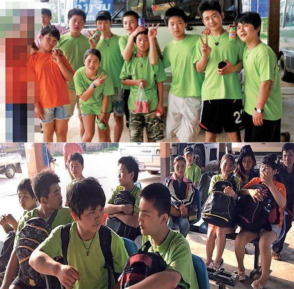 지난 5월9일 중국~라오스 국경을 넘은 것으로 알려진 주 선교사와 탈북 청소년 9명은 이튿날인 10일 라오스 우돔 사이에서 교통경찰의 불심검문으로 붙잡혀 17일간의 억류 생활을 시작했다. 왼쪽은 검문 35분 전, 오른쪽은 검문 직후 청소년들을 촬영한 동영상을 각각 갈무리한 사진이다. 박선영 전 의원 제공