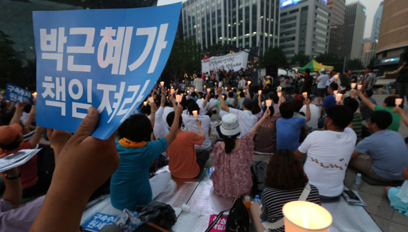 지난 7월6일 서울광장에서 ‘국정원 정치공작 대선개입 규탄·진상규명 촉구 국민촛불문화제’가 열리고 있다.