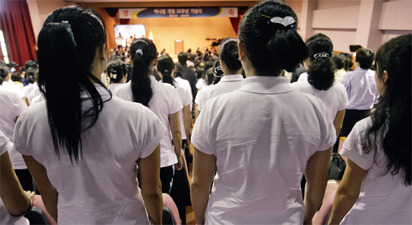하나원은 탈북자들에게 남한의 첫인상을 심어주는 곳이지만, 교육의 실효성은 떨어진다는 지적이 꾸준히 제기돼왔다. 2009년 7월 경기도 안성의 하나원에서 열린 ‘10주년 기념식’ 모습.김명진