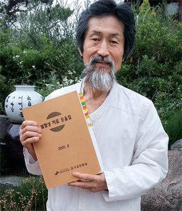 강기갑 전 의원이 지난 7월5일 경남 사천 흙사랑 농장에서 현역 의원 시절 만든 ‘쌀 협상 자료 모음집’을 들고 서 있다.