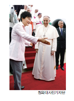 [‘율리아나’. 박근혜 대통령의 천주교 세례명이다.] 지난해 한국 천주교계가 국가정보원 대선 개입 사건과 관련해 시국미사를 열며 박 대통령 비판에 나설 때, 박창신 천주교 전주교구 원로신부 등을 겨냥한 종북몰이에 앞장섰던 이는 다름 아닌 ‘박 율리아나’와 그의 측근이었다. 이정현 당시 청와대 홍보수석은 박 대통령 사퇴 촉구 시국미사에 참여한 박 원로신부에게 “국적이 의심스럽다”는 발언을 쏟아내며 종북몰이에 열을 올렸다. 박 대통령도 박 원로신부의 일부 발언을 거론하며 “묵과하지 않겠다”고 으름장을 놨다. 그때만 해도 박 대통령이 율리아나라는 천주교 세례명을 지니고 있다는 사실을 아는 이는 많지 않았다. [교황 방한이라는 큰 행사를 맞아] 가장 열심히 ‘숟가락’을 얹은 이들은 한국 천주교계도, 시민사회도, 여야 정치권도 아닌 청와대였다. 일반적 관행과 달리 박근혜 대통령이 공항으로 직접 영접을 나선 장면이 대표적이다. 박 대통령이 교황 방문을 수차례 요청해왔고, 그가 율리아나라는 세례명을 갖고 있었으며, 서강대 등 가톨릭 재단에 속한 학교를 졸업했다는 사실도 교황 방문과 함께 일제히 언론을 통해 소개됐다. 굳이 천주교 신자가 아니더라도 교황 방문은 함께 기뻐할 일인 만큼, ‘교황 신드롬’에 편승하려는 박 대통령의 ‘숟가락 정치’도 못 본 체 넘어갈 수 있다. 다만 한국천주교주교회의(의장 강우일 주교) 등의 공식 방한 요청으로 이뤄진 이번 교황 방문의 참뜻을 박 대통령도 함께 되새긴다면 말이다. ‘가난한 자들의 벗’ 프란치스코 교황이 강조해온 메시지는 화합, 그리고 평화였다. 최성진 <한겨레> 사회정책부 기자 csj@hani.co.kr