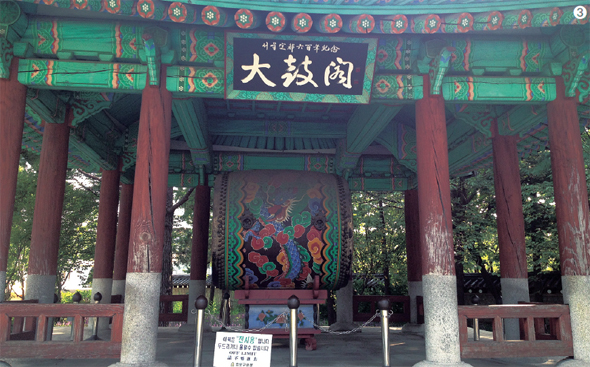 사진❸: 대통령이 세월호 참사와 특별법 문제에 주체적으로 관심을 가져야 한다는 목소리는 청와대 근처까지 다다르다 담장 앞에서 멈춰섰다. 청와대 분수대 근처엔 국민의 소리를 전하는 신문고(북)가 전시돼 있다. ‘이 북은 전시용이니 두드리거나 울릴 수 없다’며 ‘출입금지’라고 쓴 푯말이 북을 향한 접근을 막아세운다. 심상정 원내대표는 “북채도 없는 (전시용) 신문고가 불통의 대통령을 상징하는 게 아닌가, 안타까울 뿐”이라고 말했다. ‘진정한 소통의 정치’를 원하는 시민들의 소리로 채워진 광화문광장~청와대 앞의 공간을 눈으로 하나하나 목격하는 여든 살의 독일인 목사가 보였다. 한국과 인연이 깊은 파울 슈나이스 목사(오른쪽 아래 사진)였다.