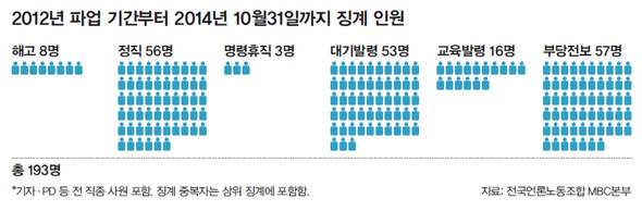 이 사안으로 언론 인터뷰를 한 조능희 PD에게 정직 4개월의 징계가 떨어졌다. 그 사이 기자 1명이 보도국 안 부서이지만 아무런 업무가 주어지지 않은 부서로 발령났다. 그 뒤에도 기자 2명이 지방자치단체 관련 사업 수주를 하는 경인지사로 발령났고, 6월2일엔 박상후 전국부장의 세월호 관련 기사를 카카오톡 입사동기 단체대화창에 공유한 기자 1명이 정직 1개월의 징계를 받았고, 6월9일엔 세월호 보도 문제를 외부 인터넷 게시판에 실명 비판한 PD가 정직 6개월의 징계를 받았다. 석 달 동안 일곱 차례의 ‘징계성 인사’가 있었다.