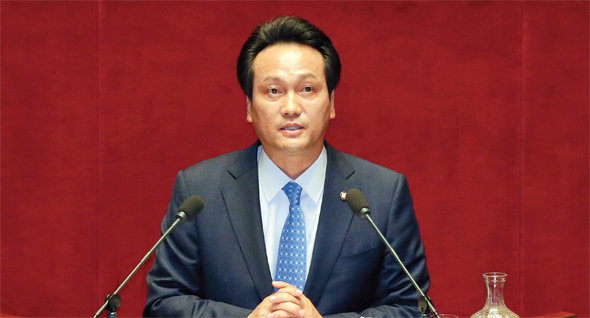 안민석 새정치민주연합 의원이 지난 4월8일 국회 대정부 질문에서 박근혜 대통령의 측근이었던 정윤회씨 딸(승마 선수)에 대한 특혜와 청와대 인사 개입 의혹을 제기하고 있다. 한겨레 이정용 선임기자