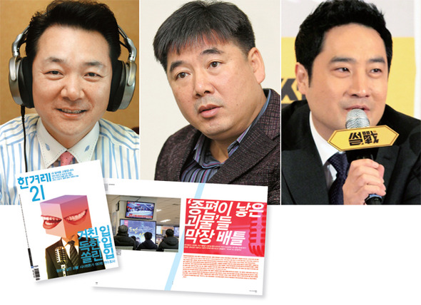 장성민 전 국회의원, 고성국 정치평론가, 강용석 전 국회의원(왼쪽부터)은 종합편성 채널을 대표하는 사회자들이다. 그들을 벤치마킹하며 제2기, 제3기 패널이 재생산되고 있다. 한겨레, 한겨레 윤운식 기자, 한겨레 강창광 기자, JTBC 시사토크쇼 썰전-독한 혀들의 전쟁 제공