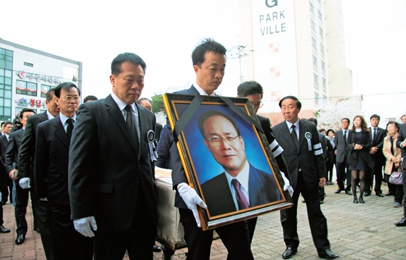 불과 한 달 전만 해도 이곳은 “서산장학재단 없이는 선거 못 치른다”는 말이 으레 당연한 곳이었다. 1991년 그가 설립한 서산장학재단은 서산·태안의 읍·면·동까지 지회가 있다. 지금도 그를 추모하는 펼침막이 읍·면·동마다 한두 개씩 걸려 있다. 20년 넘는 세월 동안 서산장학재단의 장학금을 받은 학생은 2만5천 명을 훌쩍 넘는다. 서산·태안뿐 아니라 충남의 다른 시·군과 전국 곳곳에도 지부가 있다. 나라 밖에도 지부를 두었다.