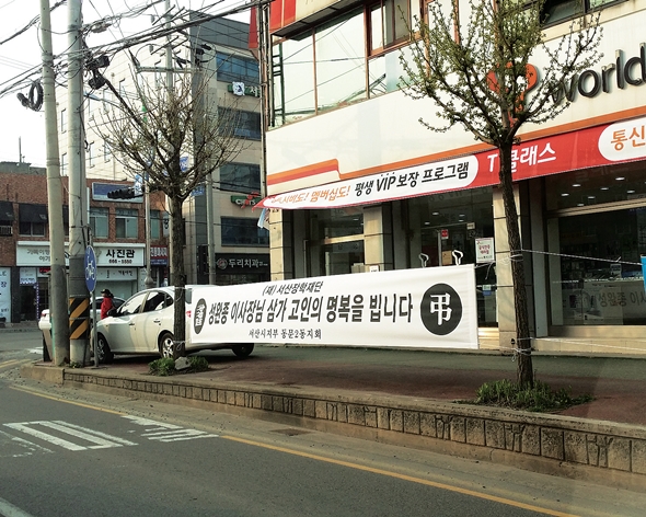 서산 시내에 걸린 성 전 회장 추모 현수막.