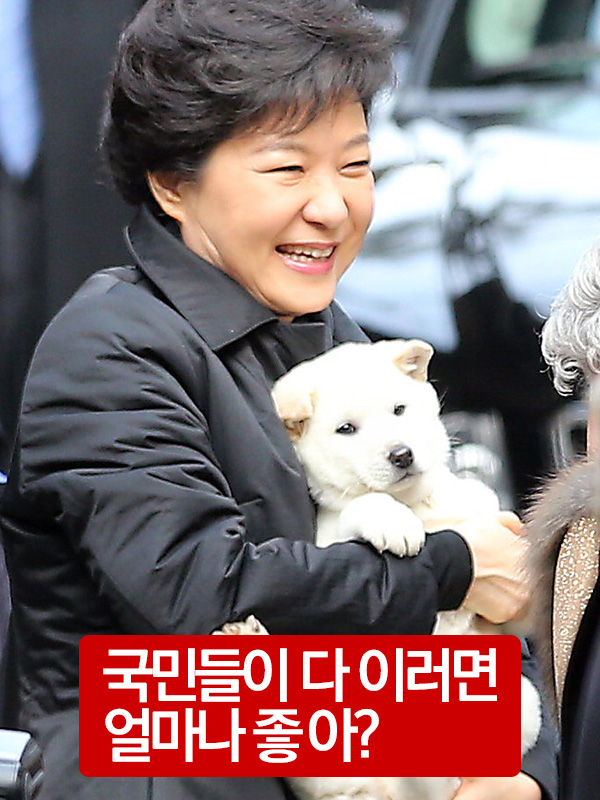 어떻게 저들은 이런 황당한 소리를 저토록 태연하게 입 밖에 꺼낼 수 있을까. 이 질문은 곧장 정권 출범 이후 지금까지 대통령이 보인 통치 행위의 특징에 가닿는다. 박근혜 정권의 통치는 철학과 공공선에 기반한 통치가 아니라 정체성과 진영에 기반한 통치다. 그래서 시민을 끝없이 둘로 나눈다. 무슨 짓을 해도 정권를 지지하는 ‘애국시민’과 정권을 비판하는 ‘좌빨-테러분자’로. 주변 정치인도 둘로 나뉜다. ‘나를 따르는 자’와 ‘나한테 욕했던 자’로.