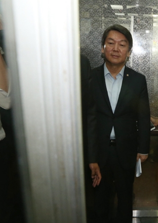 안철수 의원이 지난 6월29일 국민의당 공동대표에서 물러난다고 발표한 뒤 승강기에 오르고 있다. 한겨레 이정우 선임기자
