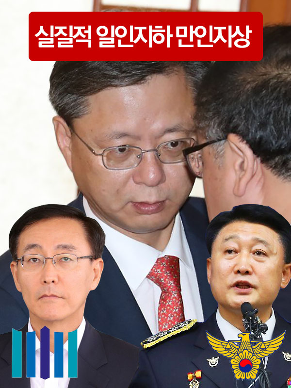 기득권이 자기 입으로 법치를 말하면서 스스로 그걸 우습게 여기는 게 드러난 바로 이 순간 정치는 냉소의 대상이 된다. 정치에 대한 냉소는 공동체를 파편화해 권력에 대들지 못하고 약자끼리 싸우게 한다. 정치도 법도 우습게 여기는 권력이 행정을 장악하고 입법과 사법을 무력화하는 걸 우리는 ‘독재’라고 부른다. 김수남과 이철성을 거느린 충신 우병우에 의해 사회가 이쪽으로 한 발짝 더 나아가는 광경을 우리는 보고 있다.