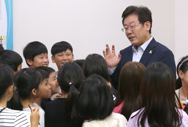 이재명 성남시장이 9월1일 성남시청 시장실에 견학을 온 초등학생들과 이야기를 나누고 있다. 이 시장은 학생들에게 “나라의 주인이 누구일까요?” “나쁜 인간이 대통령이 되면 어떻게 돼?”와 같은 퀴즈를 냈다.
