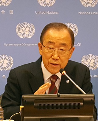 반기문 전 유엔 사무총장이 1월12일 귀국해 본격 대선 행보를 시작한다. 반 전 총장이 지난해 12월20일 미국 뉴욕 유엔본부에서 한국 특파원들과 기자회견에서 답변하고 있다. 연합뉴스