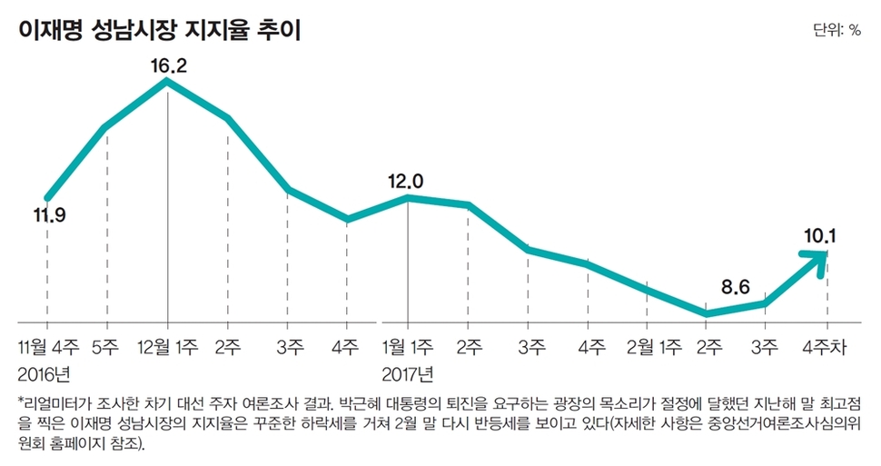 그에게 우호적이지 않은 어떤 언론들의 문제라고도 할 수 있다. 하지만 고 노무현 전 대통령의 말대로 ‘농부가 언제까지 밭을 탓할 순 없는 노릇’이다. 경선이 본격화되기도 전에 구도가 빠르게 ‘문재인 vs 안희정’으로 재편되는 움직임마저 보인다. 대선 국면이 본격화되자, 밑에서 모이는 ‘손가락혁명군’이 부상하는 속도보다 위에서 움직이는 ‘중앙정치의 관성’이 더 큰 부하로 작동하기 시작했다. ‘대선 주자’ 이재명은 끝내 ‘변방 장수’ 이재명을 극복할 수 있을까. 이재명 시장은 자신이 대통령이 되어야 하는 핵심적 이유로 ‘성남 행정의 전국화’를 꼽는다. “성남에서 한 것을 대한민국 표준으로 만들고 싶다”는 그의 바람은 “대통령은 그 수단일 뿐”이라는 말로 표현된다. 대단한 자신감이다. 그 자신감은 경제·복지 정책 전반을 관통한다. 현재 버전의 공약집이라고 할 수 있는 <이재명, 대한민국 혁명하라>(메디치미디어 펴냄)에서 이 시장은 “정부가 성남시처럼 복지정책을 하는 데 얼마가 들지 단순하게 계산해보면 (중략) 5조원 정도다. 정부 예산은 추경까지 더하면 420조원가량 되는데, 10%를 아끼면 42조원이고 7%를 절감하면 약 30조원이다. 5조원은 1% 남짓이니 마음만 먹으면 얼마든지 마련할 수 있다”고 자신한다. 성남시에서 그랬던 것처럼 지출을 효율화해서, 그 차익으로 복지를 실현한다는 계산이다. “박근혜 정부가 ‘증세 없는 복지’를 약속하고는 ‘복지 없는 증세’를 했다면 자신이야말로 ‘증세 없는 복지’를 실천하겠다”고 약속한다. 증세 없는 복지의 한계 이재명 시장은 ‘증세 없는 복지’를 “나는 할 수 있다”고 말한다. 자주 대통령 박근혜의 무능력과 성남시장 이재명의 능력을 대비한다. 얼핏 ‘내가 해봐서 아는데…’처럼 들린다. 자신을 중심에 두고 대통령을 비판하는 가장 후련한 화법이다. 하지만 정부 예산을 효율화하겠다는 약속은 후보자 시절 박근혜도 했다. 이뿐만 아니다. 예산 절감은 ‘작은 정부’를 지향하는 우파 정치인들의 단골 레퍼토리다. 하지만 대체로 실패했다. 이유는 복합적이다. 예산 편성은 부처별, 지역별로 강력한 원심력이 작동하는 문제다. 기존 사업을 축소하는 것에 대한 관료들의 반발도 치열하다. 예산 승인권을 가진 의회를 상대하기도 어렵다. 그래서 단임제 권력이 사회적 합의와 치밀한 준비 없이 예산 문제를 감당하는 건 언제나 쉽지 않다. 물론 과거에도 실패했으니 이재명도 실패할 거라고 말할 순 없다. 다만 이 시장의 말처럼 성남의 특정한 사례가 반드시 국가 예산 전체에 대한 장밋빛 전망으로 이어지진 않을 것이란 얘기다. 어쨌든 예산은 각각의 쓸모가 분야별, 시기별로 정립돼 있어 한정된 자원이다. 한정된 자원으로 공격적 복지를 확대해가는 ‘마술’은 단기간엔 가능할지 몰라도 중·장기적으론 불가능에 가깝다. 복지 확대에 대해 이 시장은 “전봇대와 공공 조경 사업만 하지 않아도 할 수 있다”고도 했다. 전봇대와 조경 사업은 사례일 테고 궁극적으론 ‘불필요한 사회간접자본(SOC) 사업 축소’를 하겠다는 것이다. 이 시장은 “SOC 사업 축소 등을 통해 30조원의 추가 재원을 마련할 수 있다”며 “대통령이 관심을 갖고 지시하면 일주일 안에도 만들 수 있는 돈”이라고 단정한다. 아직 그 추계가 구체화되지 않아 표를 의식한 ‘수사’라는 점을 감안해야겠지만, 2017년 기준으로 1년 SOC 예산의 총액은 22조원 규모다. 박근혜 정부조차 SOC 예산을 줄이고 싶어 했지만, 늘 국회가 발목을 잡아왔다. SOC 예산은 여야 가릴 것 없이 지역구 의원들이 사활을 거는 문제다. 그 행태를 비판하긴 쉽지만 현실은 녹록지 않다. 더욱이 SOC 공약 축소를 강조하면서도 정작 이 시장의 공약과 발언에는 ‘토건국가’ 체제를 개선하겠다는 철학적·구조적 명분은 보이지 않는다. 예산을 줄여본 성남시장으로서의 성공 경험을 앞세울 뿐이다. 물론 추가적인 재원 확보 방식이 제안되긴 했다. 이 시장은 ‘재벌 증세’ ‘초고액 소득자 증세와 조세 감면 축소’ 등으로 약 20조원을 추가 징수한다는 계획이다. 역시 추계의 타당성 여부와는 별개로 이 방안은 한국 사회의 지배구조 자체를 사실상 “작살내겠다”는 선전포고로 받아들여질 공산이 농후하다. 이 시장은 여러 차례 “재벌 체제를 해체하겠다” “성과연봉제, 열정페이를 작살내겠다” 등의 화끈한 발언을 하며 한국 사회의 지배구조와 싸우겠다는 의지를 밝혔다. “전체 기업 59만여 개 가운데 0.08% 수준인 440여 개 대기업의 법인세를 현재 22%에서 30%로 인상해 연평균 15조원의 재원을 마련하고, 과세표준 10억원 이상 초고액 소득자 6천 명에 대해 10억 이상분에 대한 최고 세율을 50%로 올려 2조4천억원을 추가로 마련한다”는 게 이 시장의 계획이다. 진보적 입장을 표명하는 후보의 논리로는 충분히 이해할 수 있다. 하지만 변방에서 속 시원하게 그런 주장을 하는 것과 실제 실천하는 건 다른 차원의 일이다. 이 시장이 실제 이 방안을 추진한다면 참여정부를 향했던 기득권의 저항을 뛰어넘는 보수세력 전체의 맹공이 예견된다. ‘법인세 인상’이라는 한 가지 키
