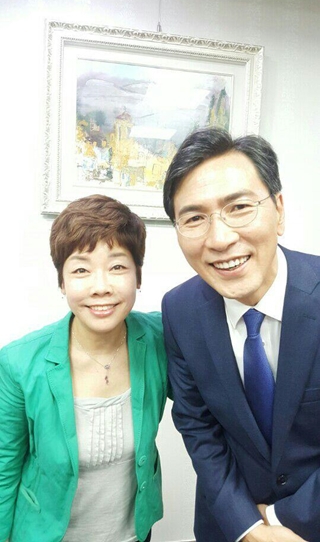 인터뷰를 마치면서 전에 충남도에서 토크 콘서트가 끝난 뒤 무대에서 함께 기념사진을 찍었을 때 기억을 떠올렸다. 안 지사는 “미화씨 이쁘게 나와야 되니까 제가 앞으로 얼굴을 내밀게요” 하며 얼굴을 쭈욱 너무 내밀어 가분수처럼 나왔는데 나는 그 사진이 좋다. “멋진 사람에게 존중받고 있다는 느낌이 들어서 기분이 좋았다”고 고백하니, 이번 인터뷰를 마치고 찍은 기념사진에서도 그는 ‘얼큰이’가 되었다(