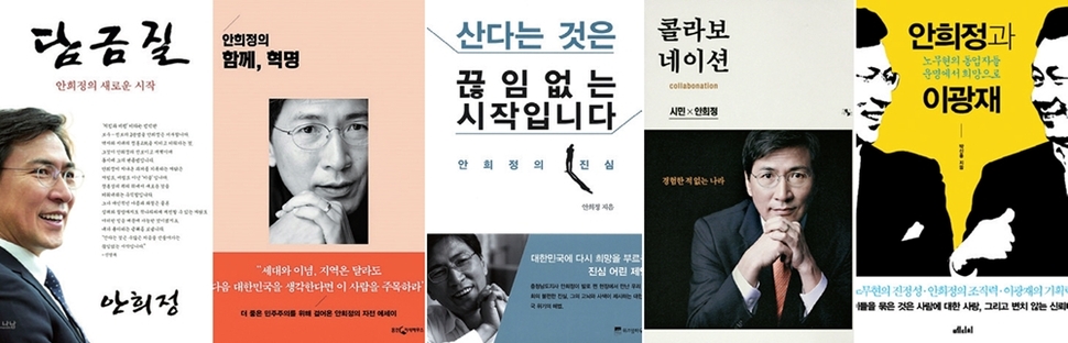 중도보수층 흡수하고픈 한때의 혁명가 안희정은 웃자랐다. 한마디로 조숙했다. 그는 1964년 충남 논산에서 2남3녀의 셋째로 태어났다. 아버지는 농사를 짓다가 철물점을 열었고, 현금이 귀하던 시골에서 나름 지역 유지가 됐다. 야학 교사였던 누나의 영향을 받아 안희정은 고등학교 1학년인 16살에 <러시아혁명사>, 계간 <창작과 비평> 등을 읽고 민주주의 혁명을 꿈꾸다 제적됐다. 대학 입학 뒤 24살에 반독재를 외치다 투옥됐다. 1988년 반미청년회 조직 사건으로 남산 대공분실에 끌려가 고문당하다 동료들의 이름을 ‘분’ 뒤 학생운동을 떠났다. 이듬해 그는 통일민주당 김덕룡 국회의원 비서로 여의도에 입성했다. 2002년 핵심 참모로 보좌하며 노무현 대통령을 당선시켰을 때 안희정의 나이는 38살이었다. 지금도 그는 더불어민주당 대선 주자 가운데 가장 젊은 53살이다. 그런데 가장 젊은 그가 ‘대연정’ ‘(이명박·박근혜의) 선의’ 등 가장 오른쪽에 가까운 이야기를, ‘동지’ ‘휴머니즘(또는 인간에 대한 사랑)’ 등 가장 고루해 보이는 단어를 써가며 입에 올린다. 중도보수층 표심을 흡수하려는 의도를 감안한다 해도 그에게선 ‘청년’보다 ‘아재’ 냄새가 난다. 그럴 만한 까닭과 곡절이 있다. 안희정과 관련한 책을 읽기 전에는 이해가 되지 않았다. 기사를 쓰기 위해 모두 다섯 권의 책을 살폈다. 책을 덮고 난 뒤 안희정이라는 인물을 만들어온 생애사와 정치적 역사에 비춰볼 때, 그때마다 그가 내린 결단 또는 결정을 거울 삼아 볼 때 ‘그럴 수 있겠다’고 생각했다. 공감은 되지 않아도 이해는 될 것 같다. 안희정이 직접 쓴 네 권의 책은 하나같이 그의 정치적 결단 시기에 맞춰 나왔다. <콜라보네이션: 시민×안희정>(스리체어스 펴냄)과 <안희정의 함께, 혁명>은 2016년 8월과 10월 잇따라 출간됐다. 대선 출마를 겨냥한 의도가 다분히 읽힌다. <산다는 것은 끊임없는 시작입니다: 안희정의 진심>은 충남도지사 재선을 앞두고 나온 책이다. <담금질>은 노무현 전 대통령 퇴임 뒤 안희정이 충남 계룡·금산·논산 국회의원에 출마하겠다며 쓴 책이다. 책의 일부 내용은 겹치거나 아예 문장 자체를 베껴 쓴 것처럼 똑같다. 안희정이 궁금하다면 이 가운데 한 권만 골라 읽어도 충분하다는 뜻이다. 최근에는 <안희정의 길: 우리 함께 걸어요>(한길사 펴냄, 2017)도 나왔다. 안희정의 인생을 좀더 드라마처럼 재밌게 접하고 싶다면, 박신홍 <중앙일보> 기자가 노무현의 ‘동업자’였던 ‘좌희정 우광재’를 인터뷰해 쓴 책을 읽는 게 낫다. 노무현을 대통령으로 만들기까지 안희정과 이광재라는 ‘주인공’들이 어떤 생각으로 어떤 구실을 했는지가 손에 잡힐 듯 생생하게 기록돼 있기 때문이다.(<안희정과 이광재: 노무현의 동업자들 운명에서 희망으로>, 메디치미디어 펴냄, 2011) “자유총연맹 동지 여러분!”