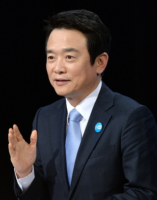 남경필 경기도지사는 논쟁적인 공약과 정책을 잇따라 던지지만 지지율은 좀체 오를 기미가 보이지 않는다. 3월20일 서울 여의도 KBS 본관에서 열린 바른정당 대선 후보 경선 토론에서 발언하는 남 지사의 모습. 국회사진기자단